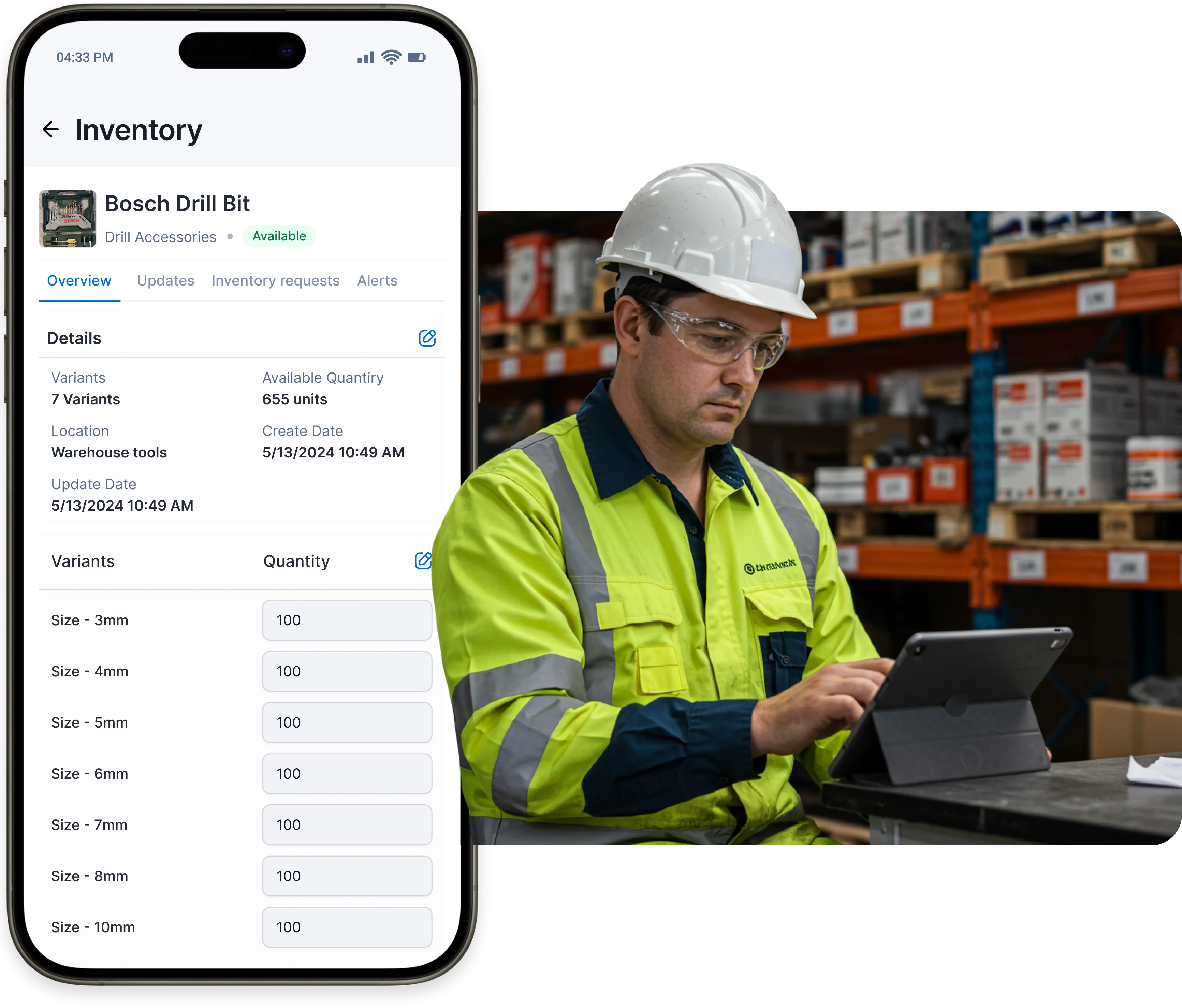Track how much stock you have, where it’s stored, and get alerts before you run out.